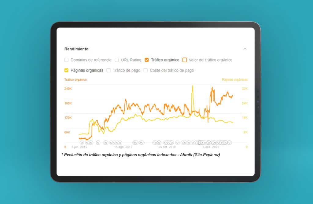 Incluso cuando hemos tenido que realizar cambios y migraciones que han supuesto la eliminación de múltiples páginas, hemos hecho valer la máxima de mejor calidad que cantidad. En la imagen que acompaña este caso de éxito se puede ver la relación entre páginas indexadas en Google y estimación de tráfico generada.